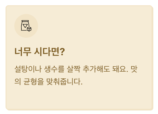입맛에 따라 설탕 1~2큰술을 추가하면 단맛이 살짝 올라와요.