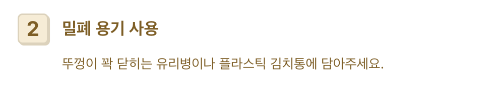 뚜껑이 꽉 닫히는 유리병이나 플라스틱 김치통에 담고, 국물 위에 랩을 한 겹 덮어주면 더욱 신선하게 오래갑니다.