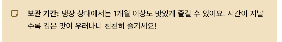 냉장 상태에서는 1개월 이상도 맛있게 즐길 수 있어요.