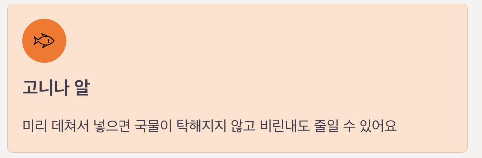| 고니나 알 | 미리 데쳐서 넣으면 국물이 탁해지지 않고 비린내도 줄일 수 있어요 |