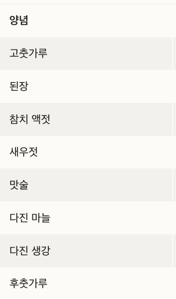 고춧가루, 된장, 새우젓, 참치액, 맛술, 다진 마늘, 생강…