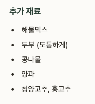 청양고추, 대파, 두부, 콩나물 등을 넣고 3~5분만 더 끓이면 완성입니다.