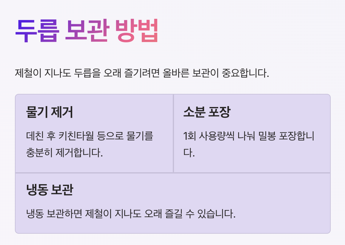 이렇게 하면 제철이 지나도 오래 즐길 수 있습니다.
