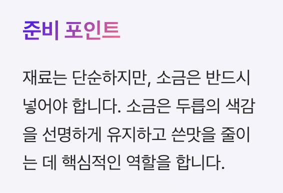 이 과정을 통해 식감을 훨씬 부드럽게 만들 수 있습니다.