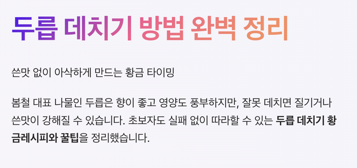 이번 글에서는 초보자도 실패 없이 따라할 수 있는 두릅 데치기 황금레시피와 꿀팁을 자세히 정리했습니다.