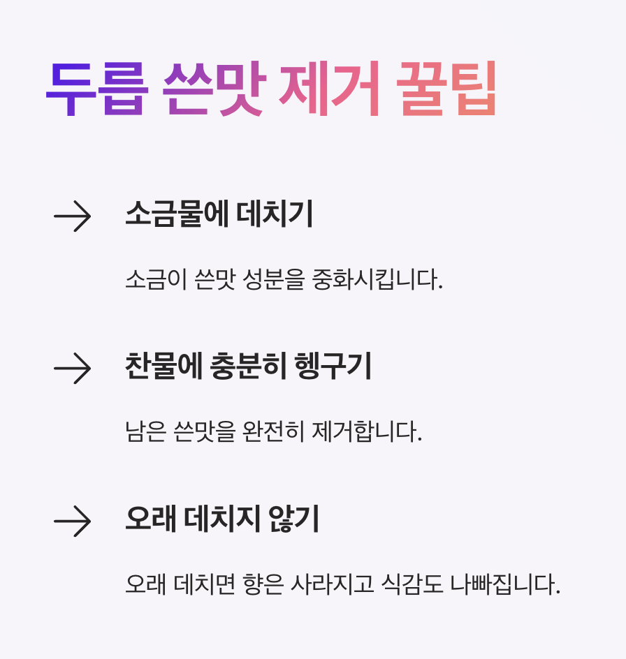 이 세 가지만 지켜도 식당에서 먹는 것처럼 아삭하고 맛있는 두릅을 즐길 수 있습니다.