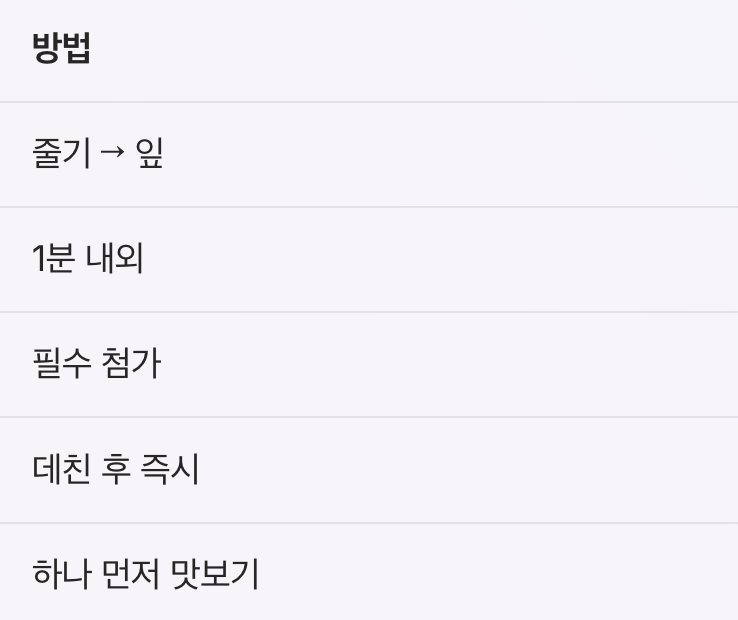 | 시간 | 1분 내외 | 아삭함 유지 |