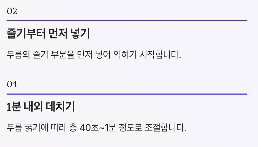 이 과정을 생략하면 물러지고 맛이 떨어질 수 있습니다.