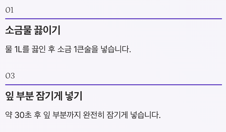 특히 오래 데치면 향은 사라지고 식감도 나빠집니다.