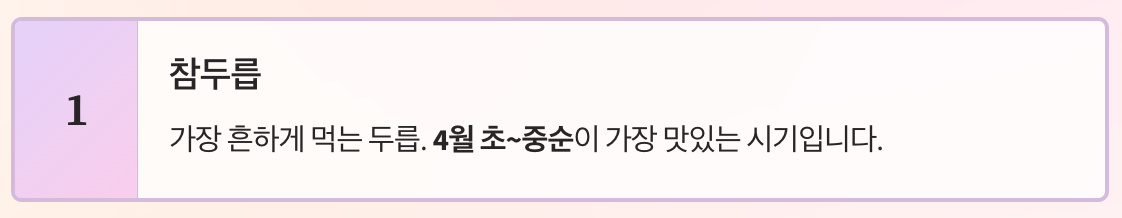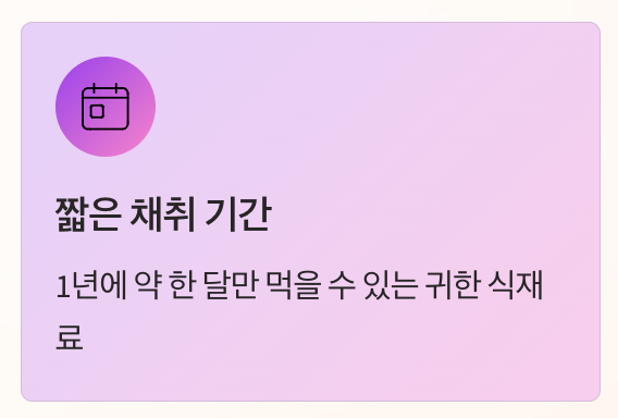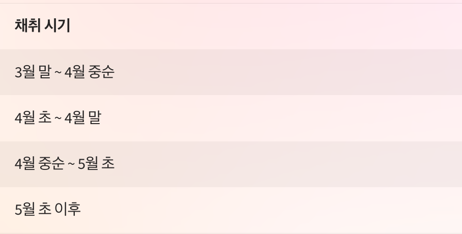 제대로 된 시기에 채취해서 가장 맛있게 즐겨보시기 바랍니다.