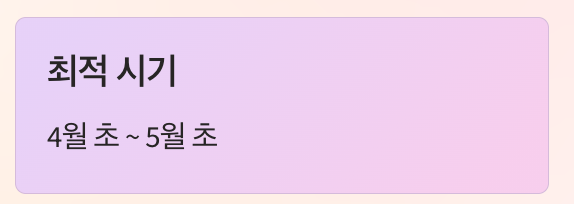 • 시기: 4월 초 ~ 5월 초