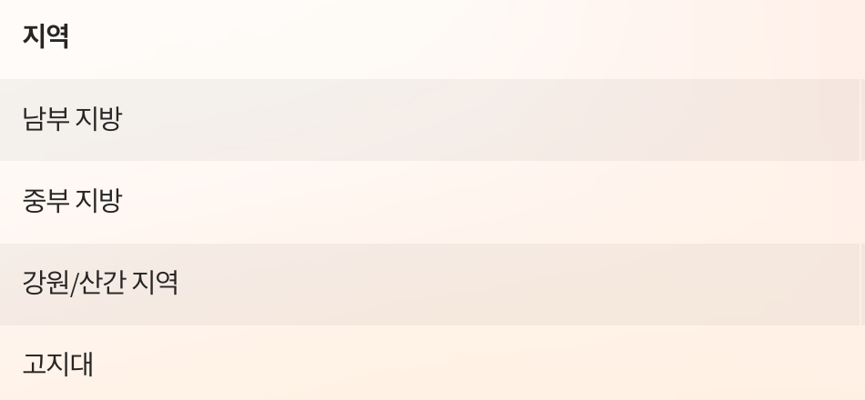 강원/산간 지역 4월 중순 ~ 5월 초