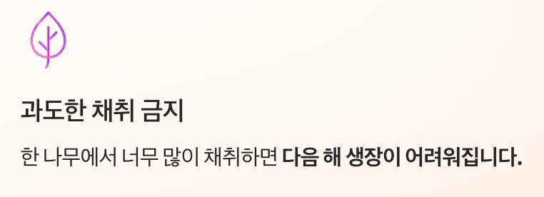 한 나무에서 너무 많이 채취하면 다음 해 생장이 어려워집니다.
