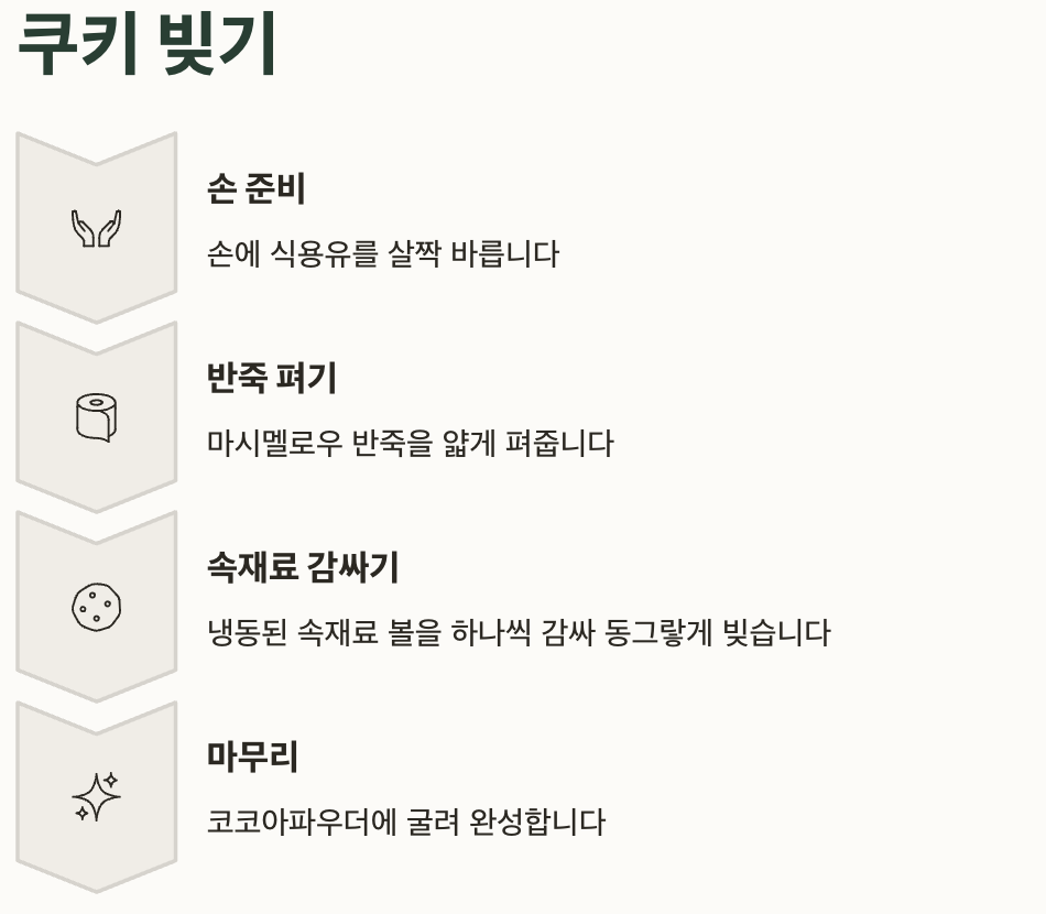 | 마시멜로우 | 350g | 쿠키 겉면 반죽 |