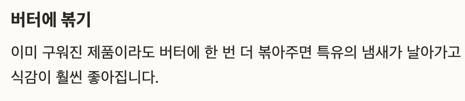 이미 구워진 제품이라도 버터에 한 번 더 볶아주면