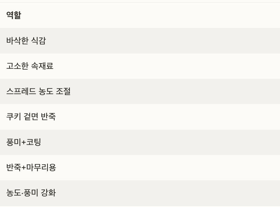 재료명분량 (25개 기준)역할