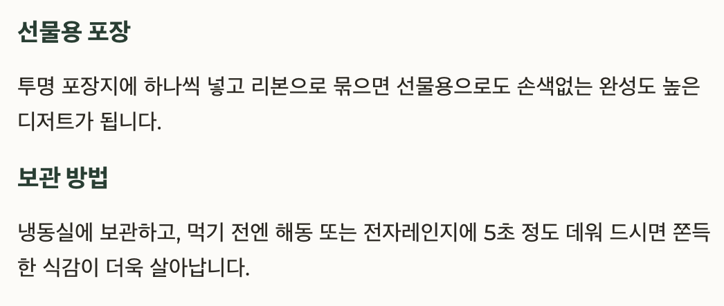 선물용으로도 손색없는 완성도 높은 디저트가 됩니다.