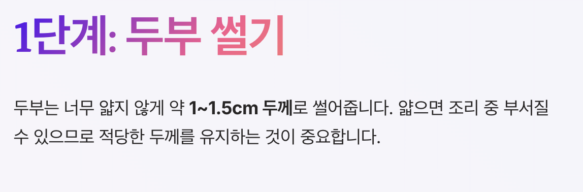 1단계: 두부 썰기