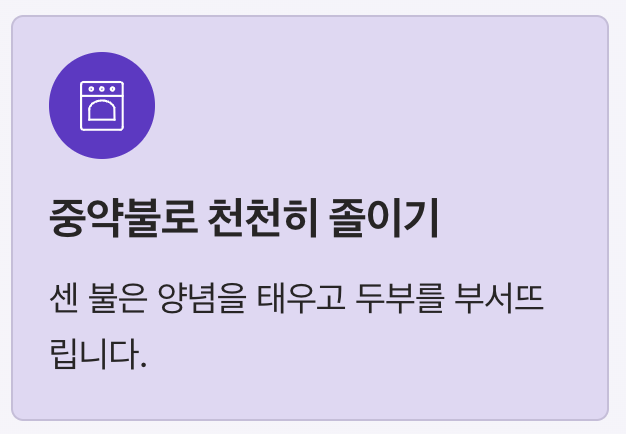 - 중약불로 천천히 졸인다
