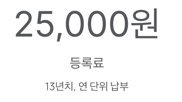등록료 약 25,000원 (1~3년치, 연 단위 납부)