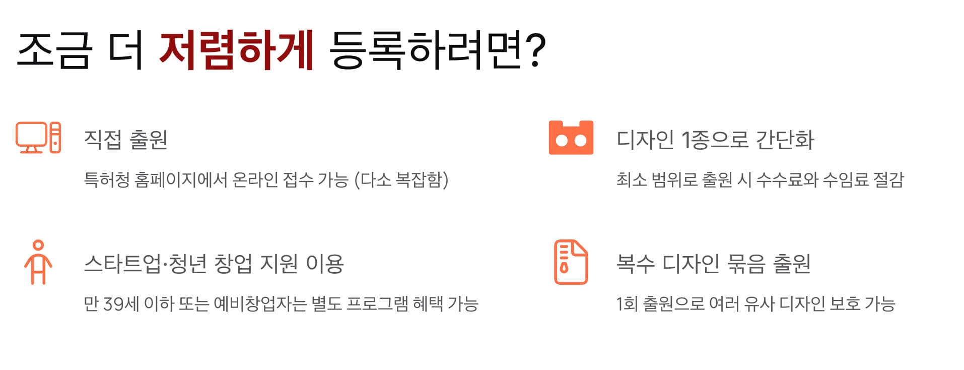 디자인 1종으로 간단화 최소 범위로 출원 시 수수료와 수임료 절감