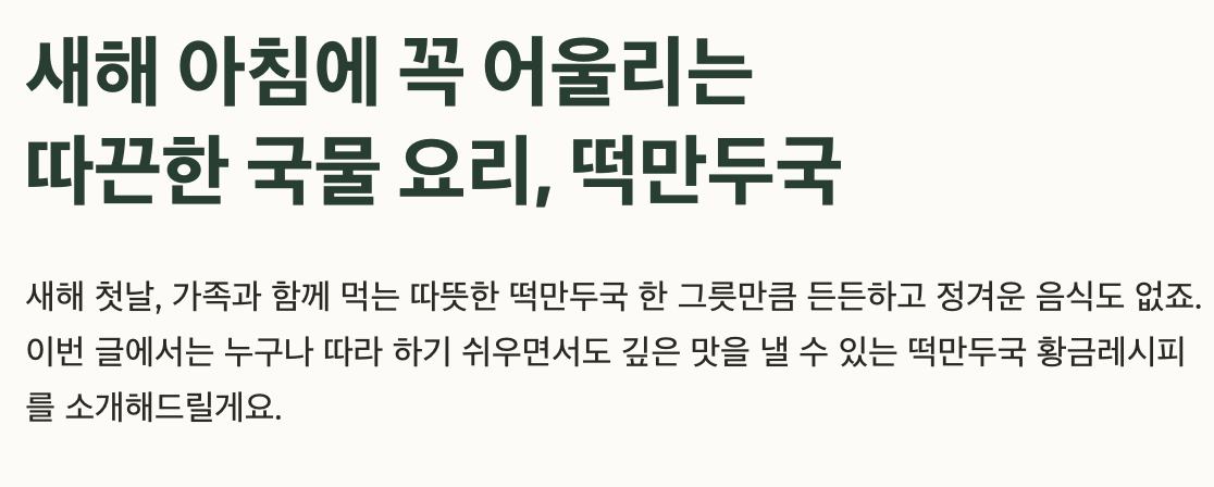 그래서 떡만두국은 단순한 음식이 아닌, 새해의 기운을 가득 담은 상징적인 요리이기도 합니다.