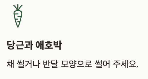 | 애호박 | 20g | 채썰기 |