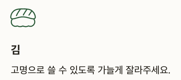 | 구운 김 | 적당량 | 고명 |