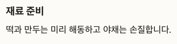 떡과 만두는 미리 해동해서 준비하세요