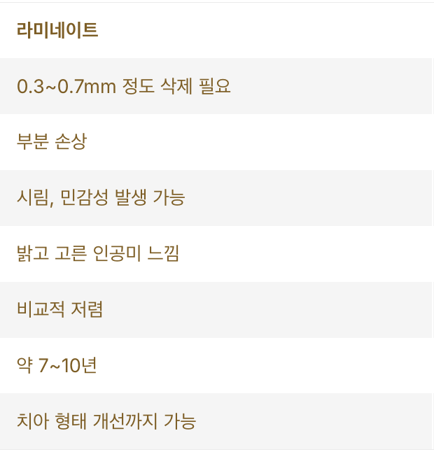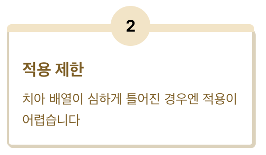 특히 얇은 보철물로 인해 강한 충격 시 파손 위험이 있고, 치아 배열이 심하게 틀어진 경우엔 적용이 어렵습니다.
