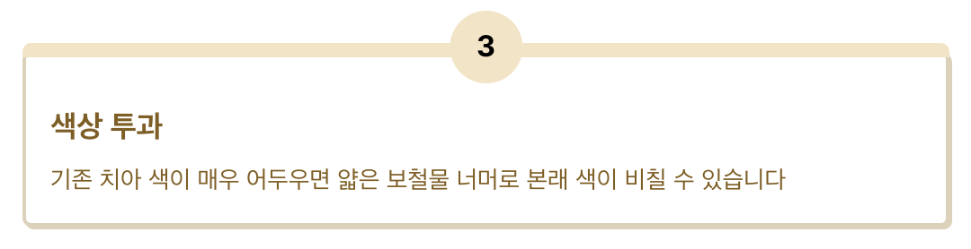 또한 기존 치아 색이 매우 어두우면 얇은 보철물 너머로 본래 색이 비칠 수 있습니다.