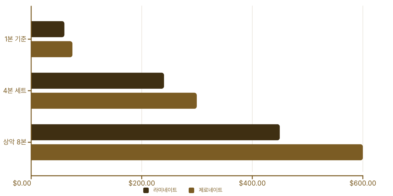 | 제로네이트 | 약 70~80만 원 | 280~320만 원 | 550~650만 원 |