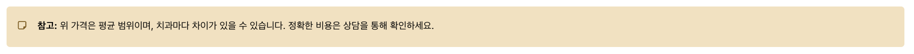 시술 비용은 치과마다 다르지만 대체로 다음과 같은 차이가 있습니다.
