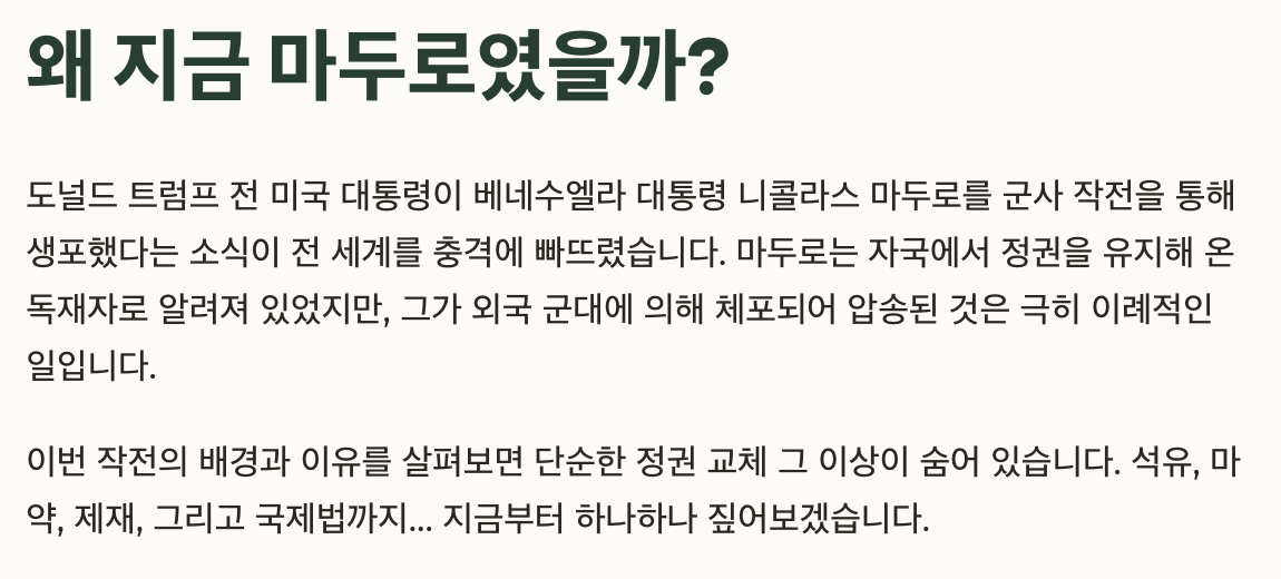 왜 지금 마두로였을까? 체포 작전의 진짜 이유는 무엇인가요?
