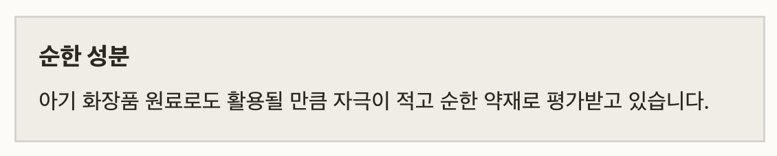 특히 다당류와 플라보노이드 성분이 피부의 염증을 가라앉히고 장벽을 강화해주는 데 도움을 줘서 아토피나 민감한 피부에도 쓰이고 있어요. 덕분에 아기 화장품 원료로도 활용될 만큼 자극이 적고 순한 약재로 평가받고있죠.