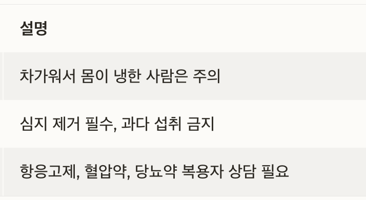 복용 시 심지 제거 필수, 과다 섭취 금지