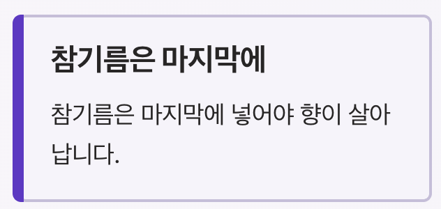 넷째, 참기름은 마지막에 넣어야 향이 살아납니다.