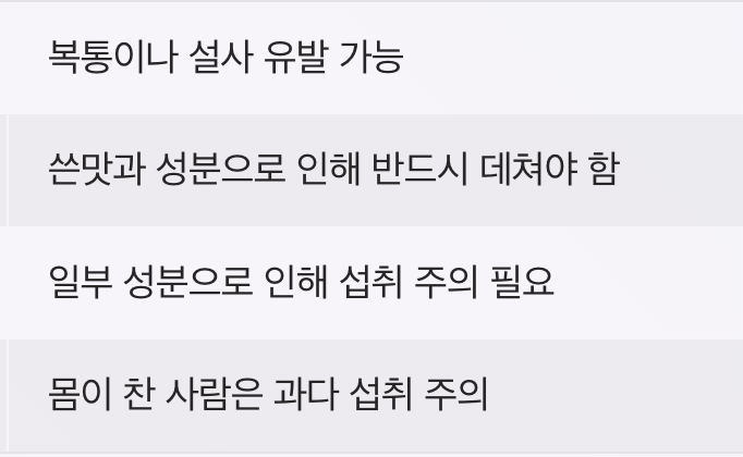 뿌리 섭취 일부 성분으로 인해 섭취 주의 필요