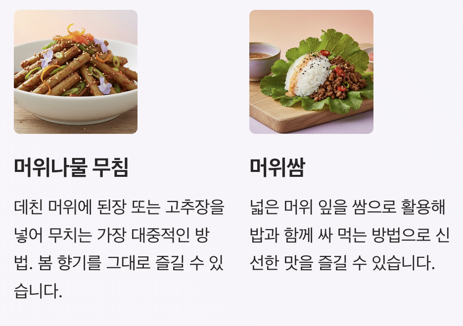 특히 머위는 반드시 데쳐서 섭취해야 안전하며, 적당량을 지키는 것이 중요합니다.