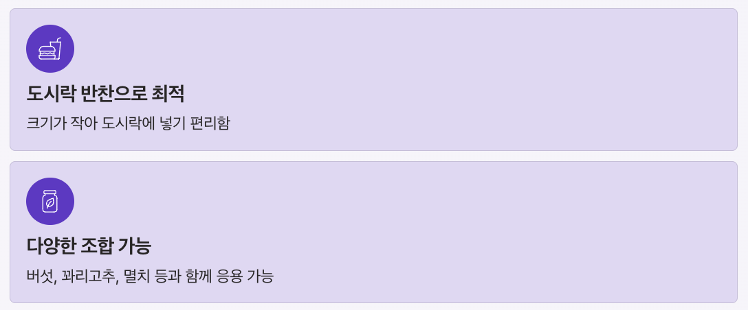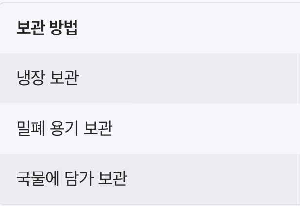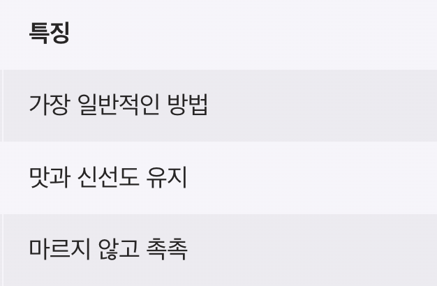 | 국물에 담가 보관 | 오래 유지 | 마르지 않고 촉촉 |