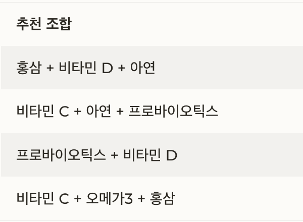 | 만성 피로형 | 홍삼 + 비타민 D + 아연 |