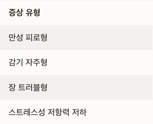 증상 유형 추천 조합