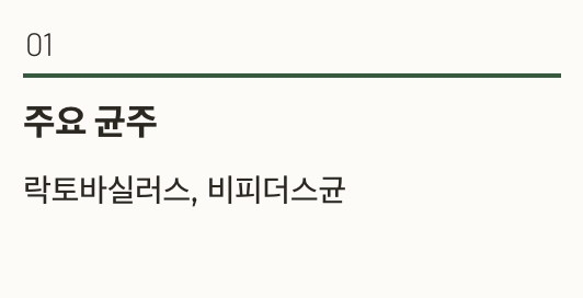 • 주요 균주: 락토바실러스, 비피더스균