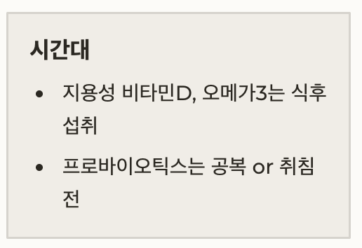 • 지용성 비타민D, 오메가3는 식후 섭취
