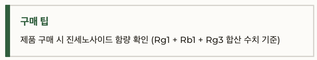 • 제품 구매 시 진세노사이드 함량 확인