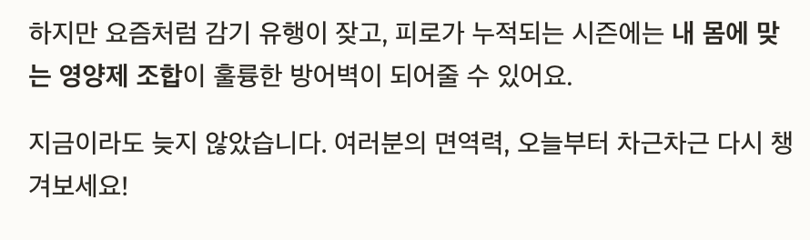 지금이라도 늦지 않았습니다. 여러분의 면역력, 오늘부터 차근차근 다시 챙겨보세요!