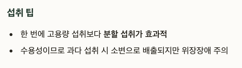 • 한 번에 고용량 섭취보다 분할 섭취가 효과적