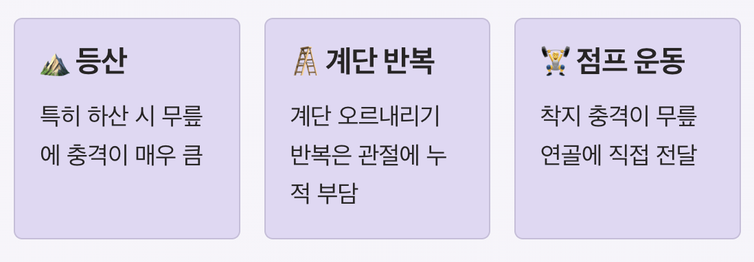 - 등산 (특히 하산 시 충격 큼)
