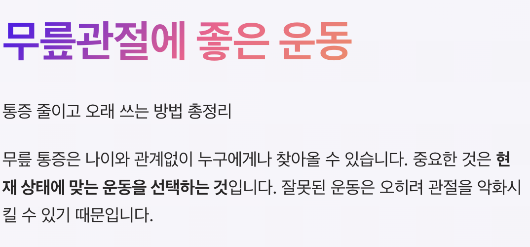 무릎은 한 번 손상되면 회복이 쉽지 않은 부위입니다. 지금부터라도 올바른 운동 습관으로 건강한 관절을 유지해보세요.