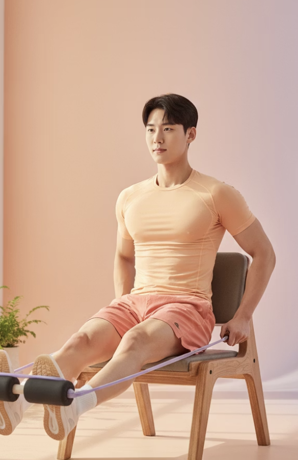 - 의자에 앉아 다리 곧게 펴기